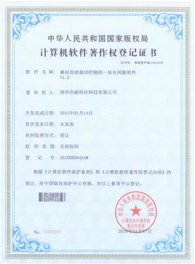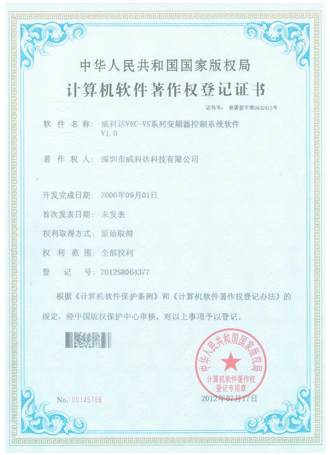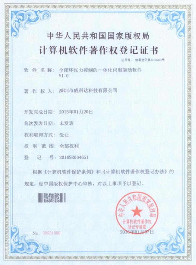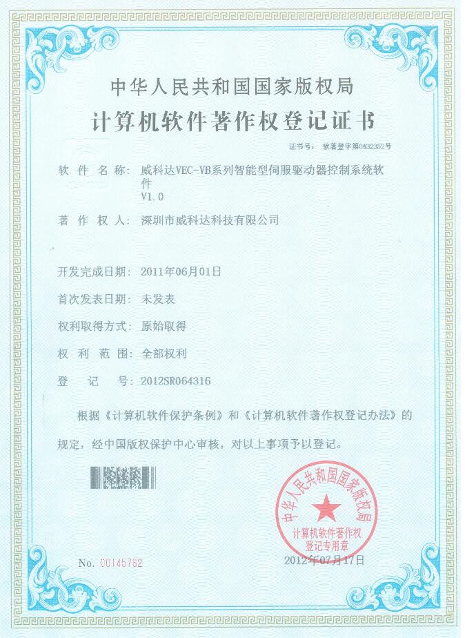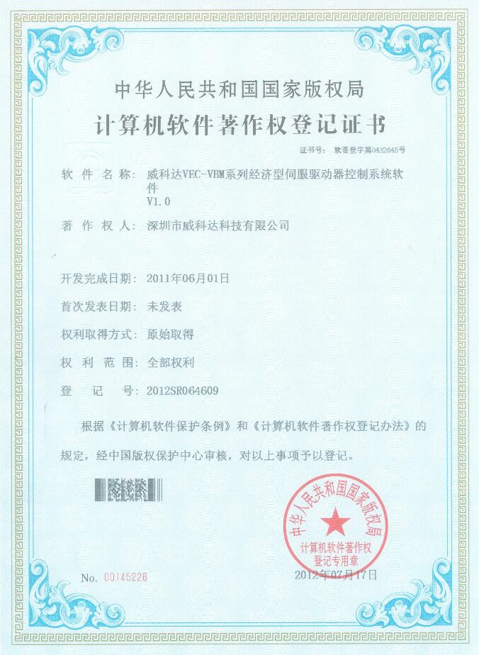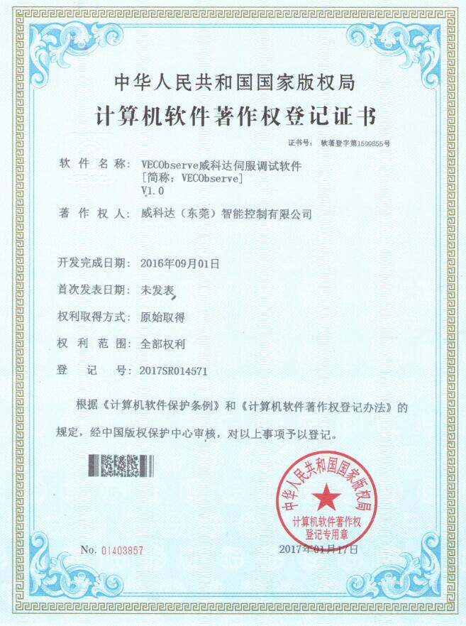 威科達(dá)伺服調(diào)試軟件證書