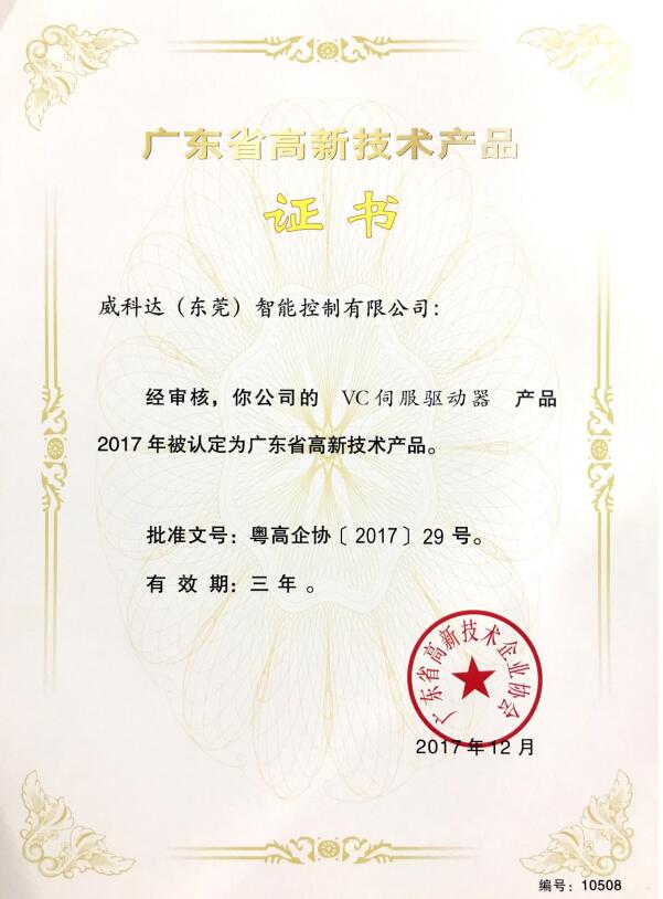 廣東省高新技術(shù)產(chǎn)品證書